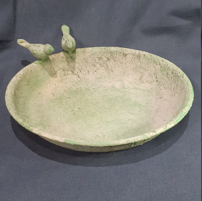 Understated and dainty this little bird dish is pretty whether you decide to use it for feeding the birds or inside the house to collect trinkets. Decorated in a faded emerald green colour this understated but oh so pretty and will make a charming additon to your home.
