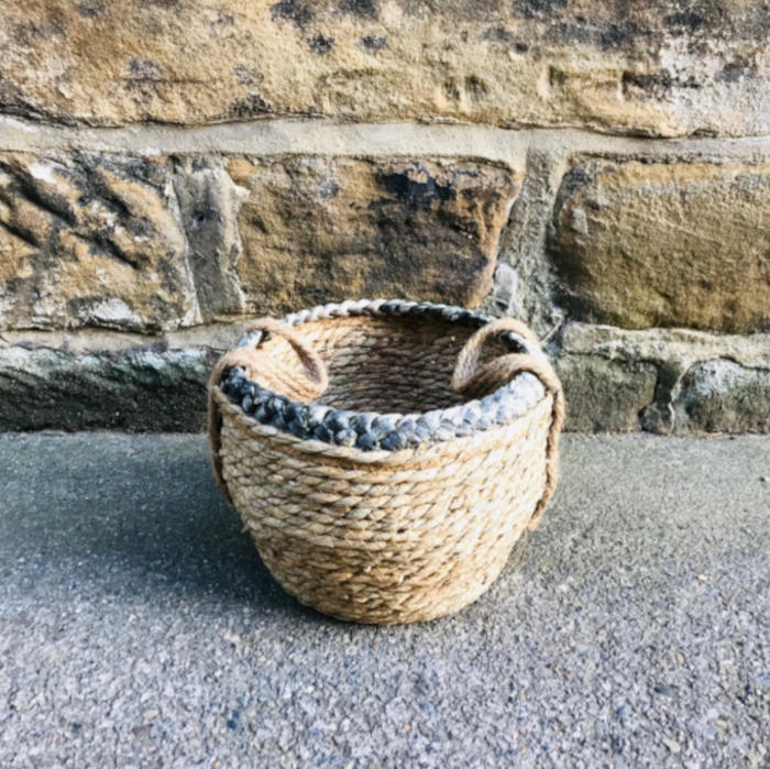 This robust, round-bottomed straw basket with grey braid rim and handles, will make a practical addition to any home, whether used to stylishly hide toys or house beautiful plants, you’ll always find a need for them.