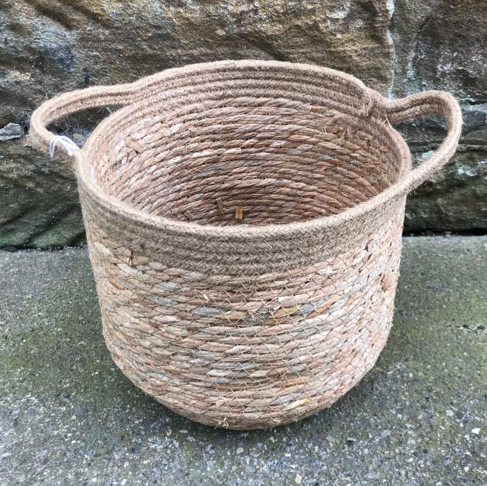 This robust, round-bottomed straw and jute basket with handles, will make a practical addition to any home, whether used to stylishly hide toys or house beautiful plants, you’ll always find a need for them.