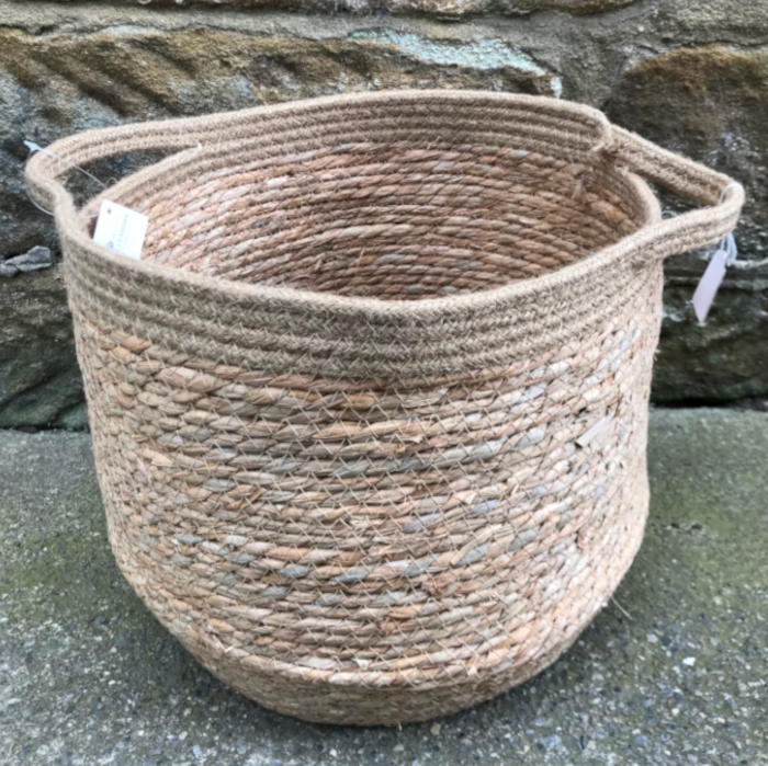 This robust, round-bottomed straw and jute basket with handles, will make a practical addition to any home, whether used to stylishly hide toys or house beautiful plants, you’ll always find a need for them.