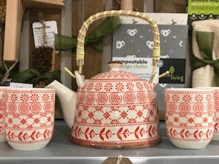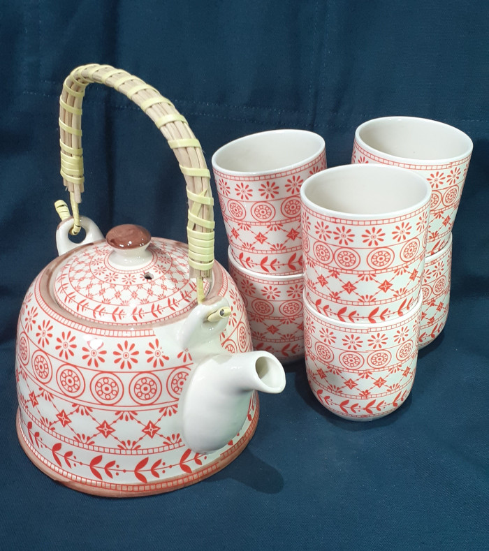 This delightful tea set is packed in a gift box, including a tea pot with metal strainer in the lid and six matching cups. A perfect house warming gift.
