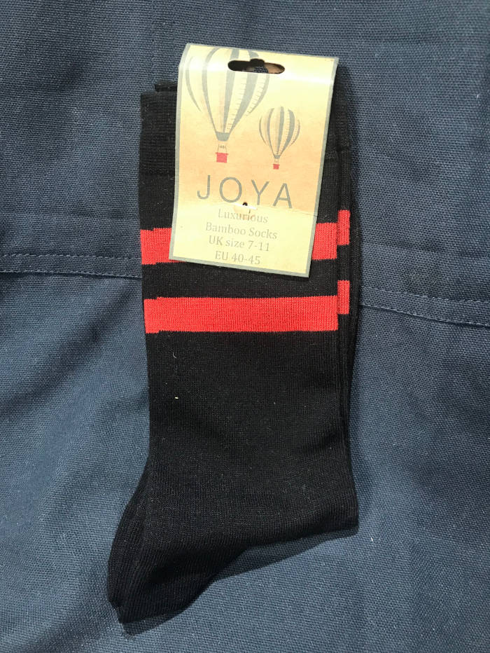 Mens Bamboo Socks – Black Red Stripe
