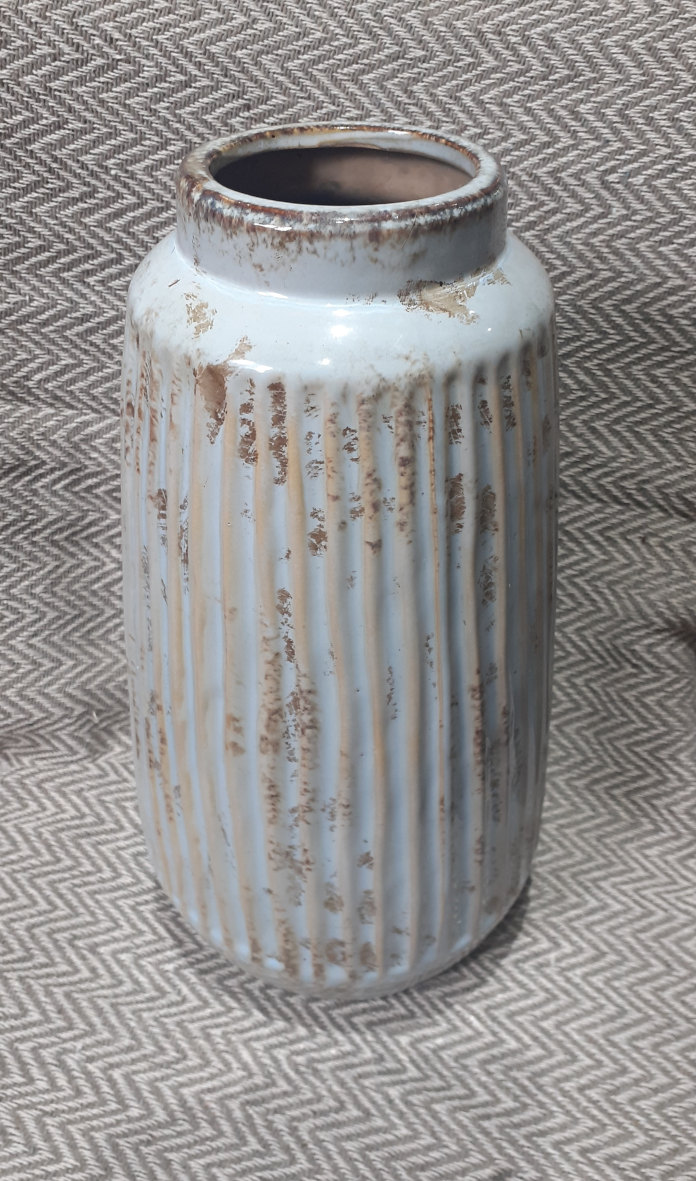 This tall ceramic vase is elegantly designed and finished with a rustic, shabby chic effect, making it the perfect addition to any interior.