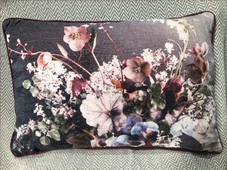 This velvet cushion with it’s floral design is eye-catching, complete with a block colour back and contrasting piping. Designed to add a show stopping touch to your interior, these beautiful soft furnishings are a work of art within themselves! Display alone to embellish a plain armchair or team with a variety of other cushions to create a stunning focal point within your home.