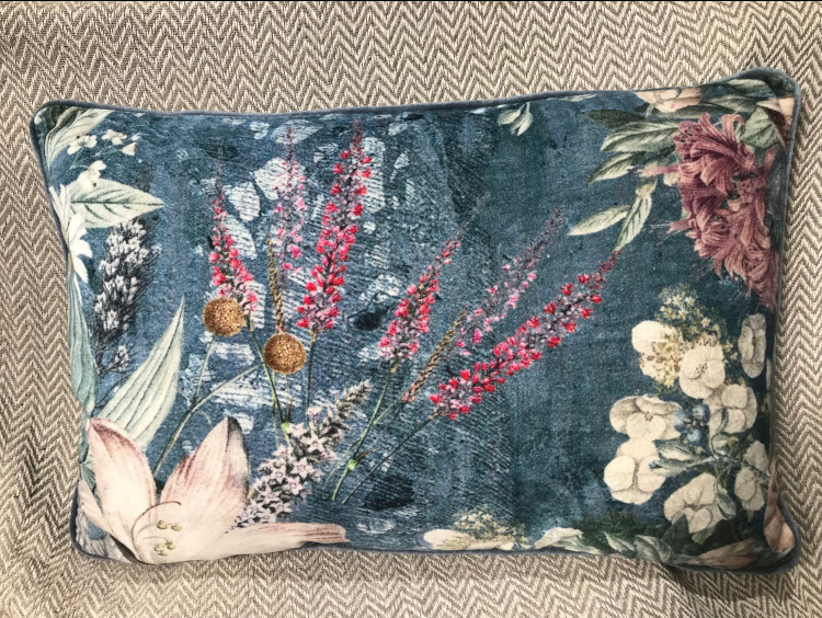 This velvet cushion with it’s floral design is eye-catching, complete with a block colour back and contrasting piping. Designed to add a show stopping touch to your interior, these beautiful soft furnishings are a work of art within themselves! Display alone to embellish a plain armchair or team with a variety of other cushions to create a stunning focal point within your home.