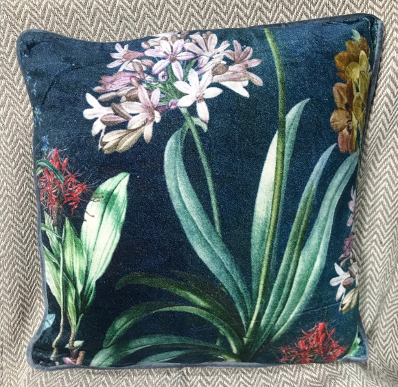 This velvet cushion with it’s floral design is eye-catching, complete with a block colour back and contrasting piping. Designed to add a show stopping touch to your interior, these beautiful soft furnishings are a work of art within themselves! Display alone to embellish a plain armchair or team with a variety of other cushions to create a stunning focal point within your home.