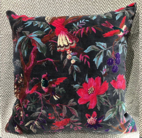 Bird Of Paradise Velvet Cushion (Slate Grey)